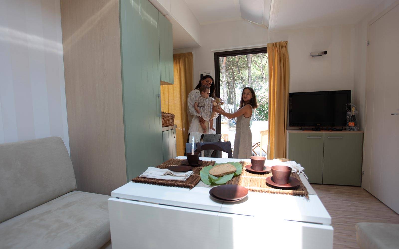 La Natura Collection del Camping Village Dei Fiori offre alloggi eleganti e spaziosi, ideali per chi desidera vivere la vacanza a Cavallino Treporti a stretto contatto con la natura senza rinunciare al comfort. Con linee moderne, ambienti luminosi e una grande terrazza rialzata in legno, questi chalet offrono uno spazio esclusivo dove rilassarsi in famiglia o con gli amici.